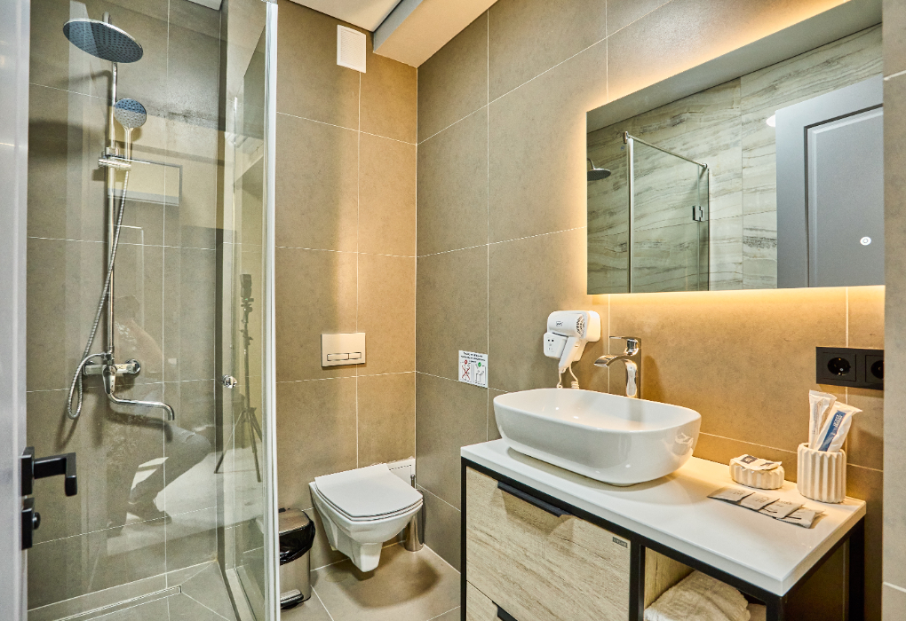 Площадь номера - 35 кв.м. 1 комната. 2 осн. места. номера расположены на 1 этаже, возможно размещение с питомцами. В номере: телевизор; холодильник; кондиционер; душ; фен; тапочки; туалетные принадлежности; 2-спальная кровать; тумбочки; чайник; шкаф; санузел; чайный набор посуды. 1 доп. место: Диван-кровать - по запросу.